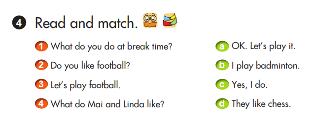 1 - b What do you do at break time? - I like badminton.